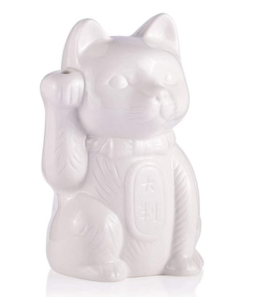 The Maneki Neko Lucky Cat tiki mug is made from white ceramic and will hold about 14 ounces of your favorite cocktail or tiki drink.