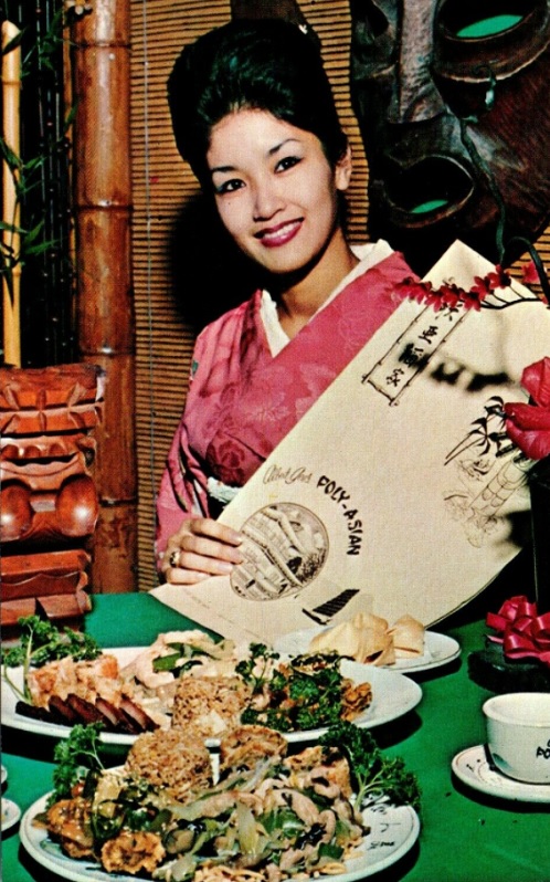 A collection of vintage Polynesian restaurant postcards with views of the inside and outside of Polynesian restaurants from the past.